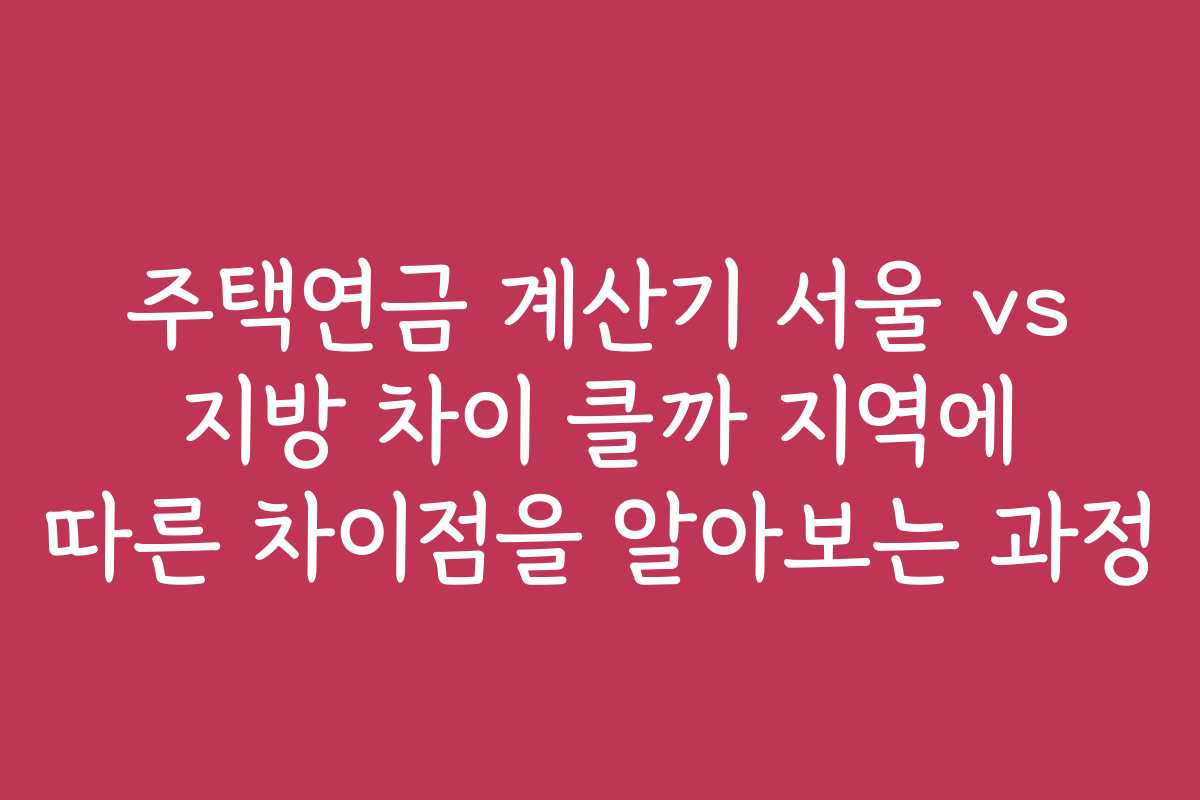 주택연금은 소유하고 있는 주택을 담보로 안정적인 노후생활을 위한 자금을 마련할 수 있는 제도입니다. 하지만 같은 주택연금 계산기라도 서울과 지방에 따라 다르게 계산될 수 있습니다. 이러한 차이를 이해하는 것은 재정적 계획을 세우는 데 큰 도움이 됩니다.