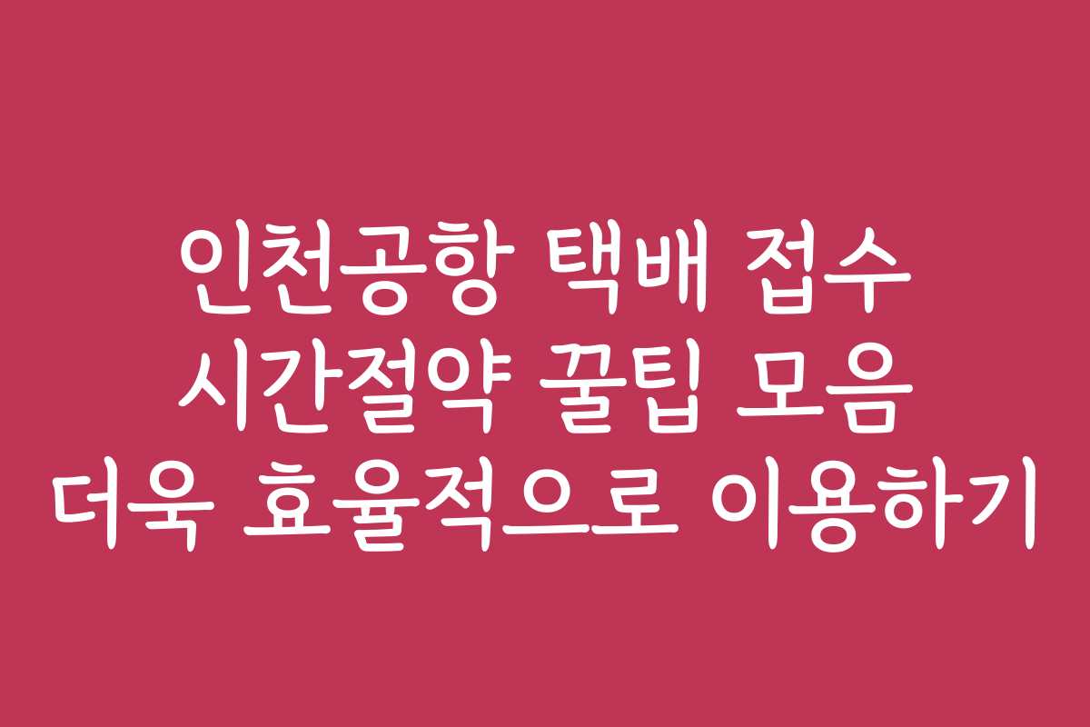 인천공항 택배 접수를 할 때, 시간이 부족해서 애를 먹는 경우가 많습니다. 복잡한 절차와 긴 대기시간 때문에 효율적으로 이용하기 어렵다면, 이번 포스팅을 통해 필요한 꿀팁을 알려드리겠습니다. 인천공항 택배 접수의 시간을 절약하고 더 나은 경험을 만들어보세요!