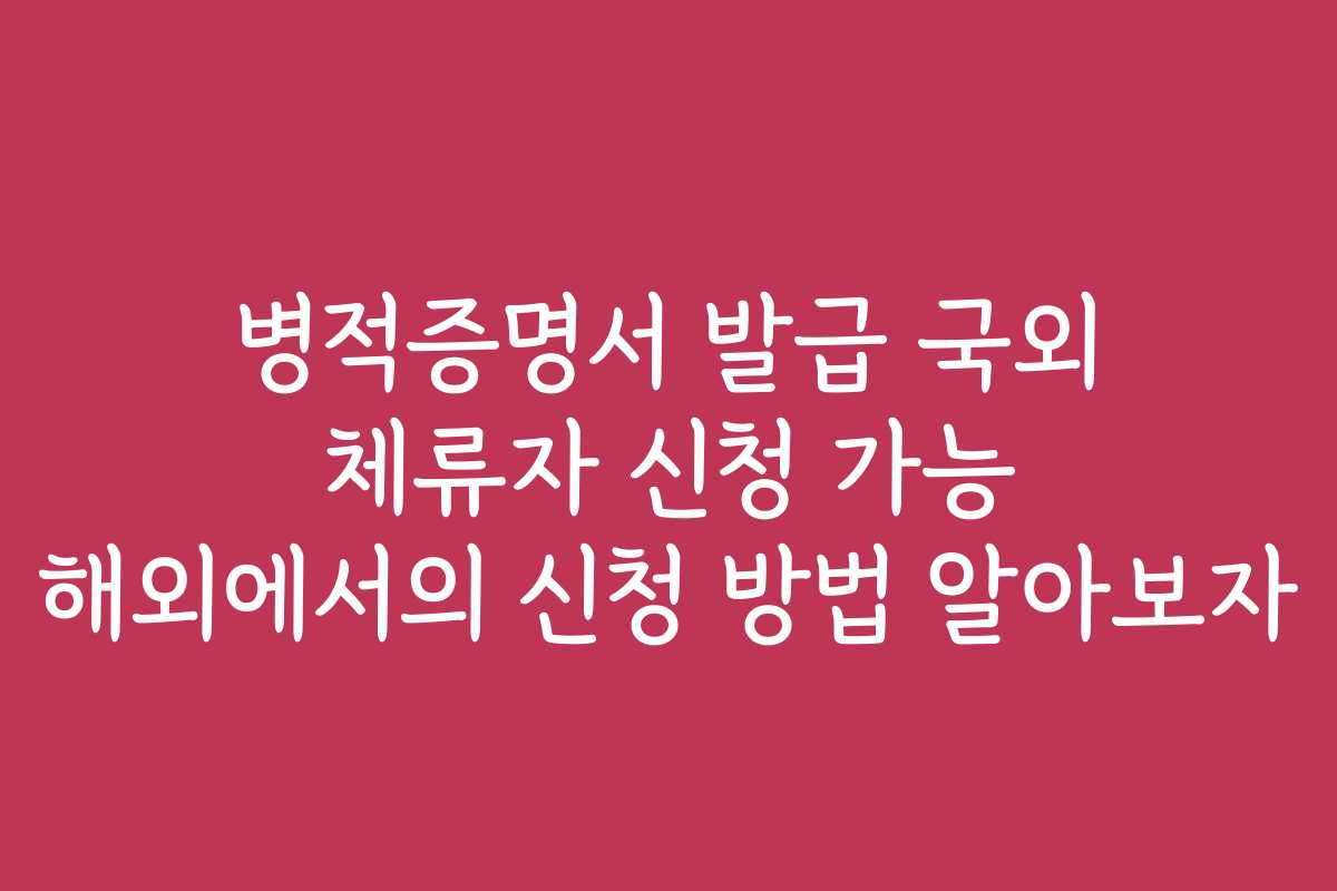 국외에 체류 중인 경우, 주로 대사관이나 영사관을 통해 병적증명서를 신청합니다. 이는 온라인으로도 가능하며, 필요한 서류를 미리 준비해야 합니다.
