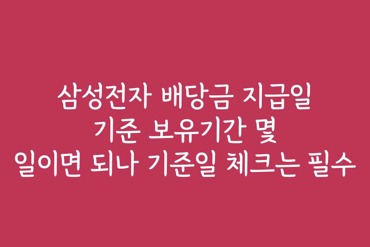 삼성전자의 배당금을 받기 위해선 배당금 지급일 기준 보유기간이 얼마나 필요한지 많은 투자자들이 궁금해합니다. 배당금은 안정적인 수익을 추구하는 투자자에게 큰 매력이지만, 일정한 조건을 충족해야만 받게 됩니다. 이번 포스트에서는 삼성전자의 배당금 지급을 위한 기준일과 보유기간에 대해 자세히 알아보겠습니다.