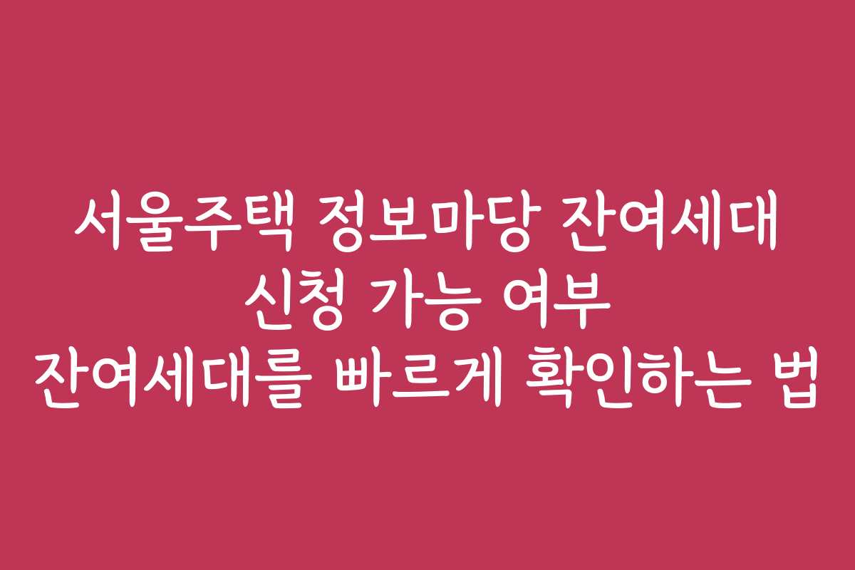 핵심·연관 키워드: 서울주택 정보마당, 잔여세대, 신청 가능 여부, 주택 구매, 정보 검색, 신청 절차, 고객센터, 업데이트, 서비스 비교, FAQ, 부동산