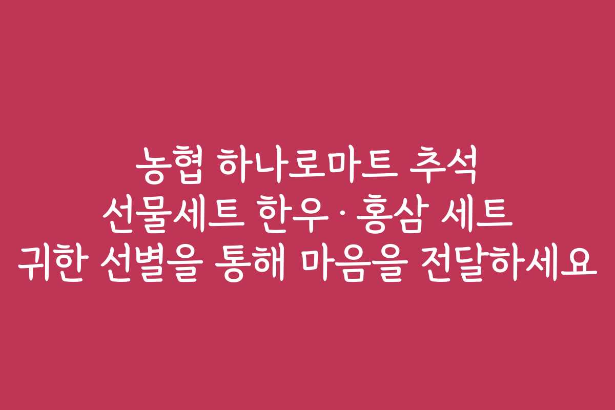 농협 하나로마트는 품질 좋은 한우와 홍삼을 제공합니다. 각 상품은 엄격한 기준 하에 선별되며, 고객이 만족할 수 있도록 노력하고 있습니다. 따라서, 농협의 추석 선물세트를 선택한다면 믿음을 바탕으로 한 선택이 될 것입니다.