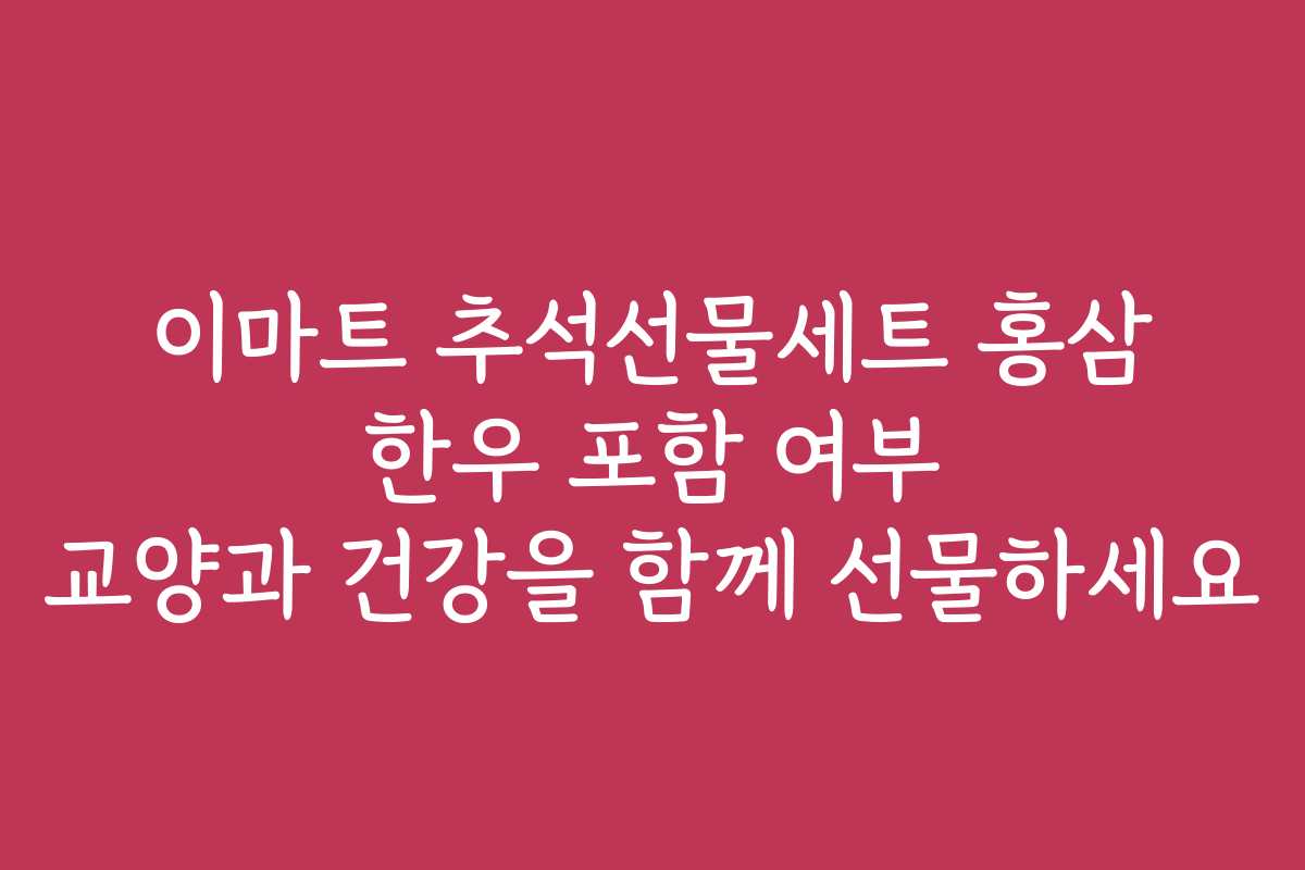 다가오는 추석, 가족과 친구들에게 어떤 선물을 준비할지 고민 중이신가요? 이마트의 추석선물세트에는 홍삼과 한우가 포함되어 있는지 알아보도록 하겠습니다. 건강과 교양을 동시에 선물할 수 있는 아이템으로는 무엇이 있을지 자세히 살펴보겠습니다.