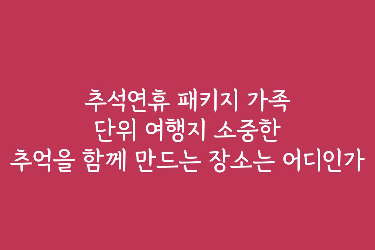 추석연휴 패키지 가족 단위 여행지 소중한 추억을 함께 만드는 장소는 어디인가