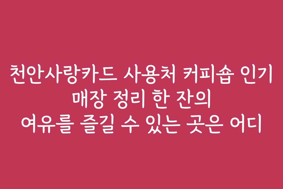 천안사랑카드의 사용처로 커피숍이 포함돼 많은 시민들이 이용하고 있습니다. 하지만 어떤 커피숍이 인기가 있을까요? 이번 포스트에서는 천안사랑카드로 사용 가능한 커피숍들을 정리하고, 한 잔의 여유를 즐길 수 있는 곳들을 소개하겠습니다.