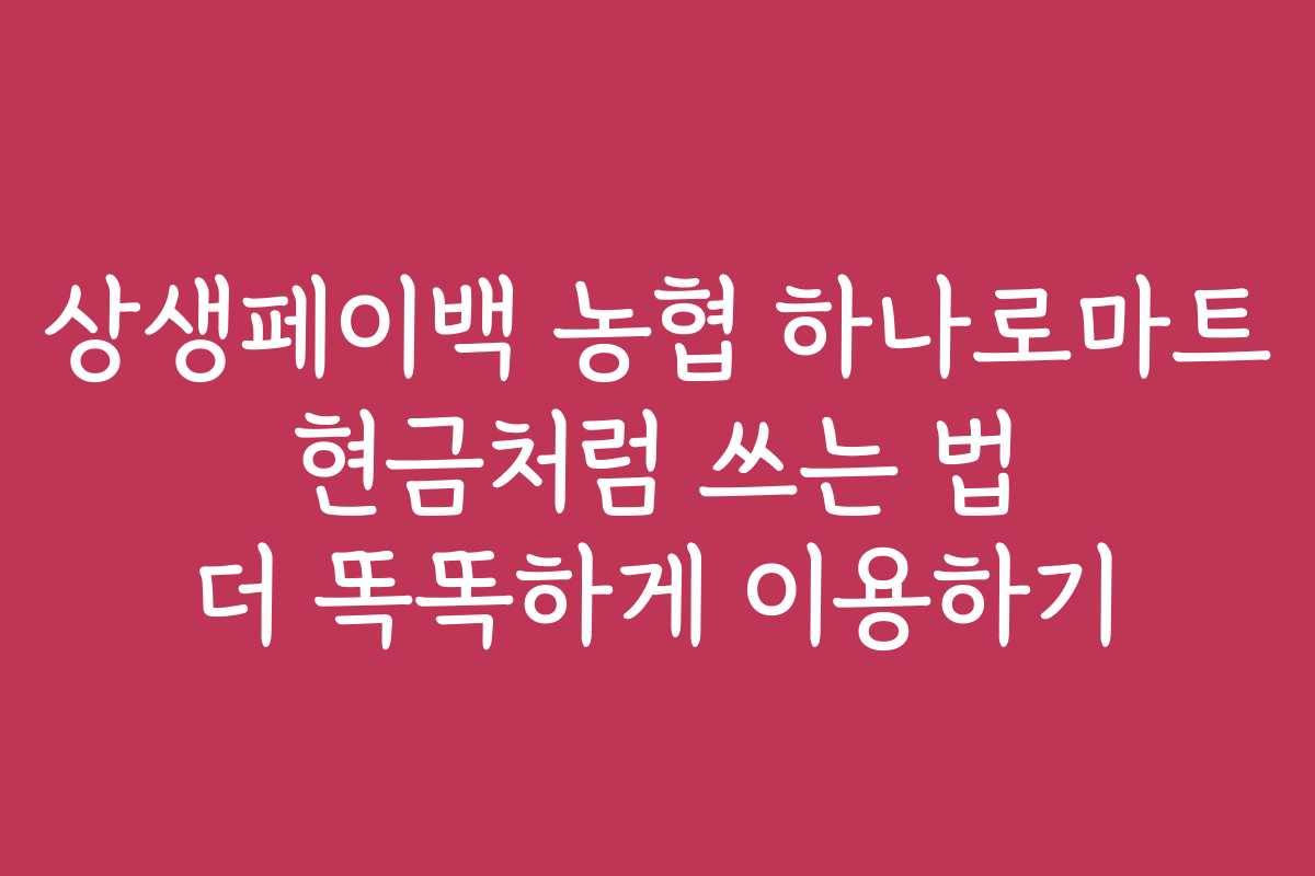 핵심 키워드: 상생페이백, 농협 하나로마트, 현금처럼 쓰는 법, 멤버십, 쇼핑, 소비자 리뷰, 결제 방법, 유의사항, 할인 혜택, 스마트 쇼핑, 재정 관리