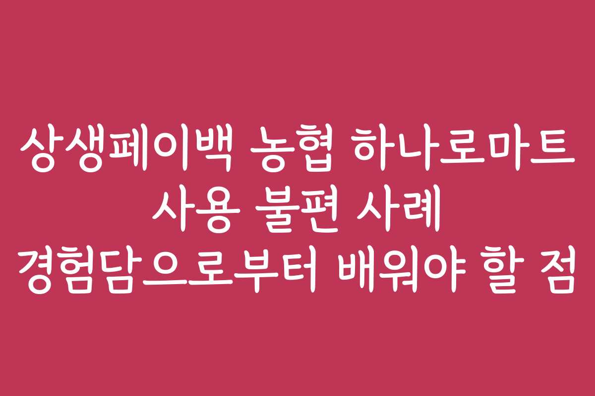 상생페이백 농협 하나로마트 사용 불편 사례 경험담으로부터 배워야 할 점