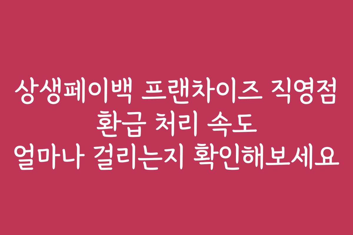 상생페이백 프랜차이즈 직영점의 환급 처리 속도가 얼마나 걸리는지 궁금하신가요? 많은 상생페이백 이용자들이 환급 과정에서 시간 소요 문제로 인해 걱정하고 있습니다. 이 글에서는 환급 처리 속도와 관련된 모든 정보를 안내해 드리겠습니다.