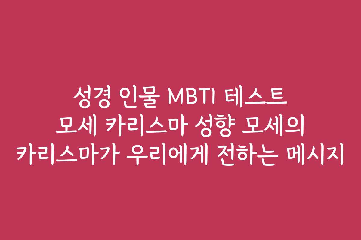 모세는 성경에서 가장 위대한 인물 중 하나로, 그의 카리스마는 사람들에게 큰 영향을 미쳤습니다. 그렇다면 모세의 성격 유형은 어떨까? 모세의 카리스마가 우리에게 전하는 메시지는 무엇일까요? MBTI를 통해 분석해보겠습니다.