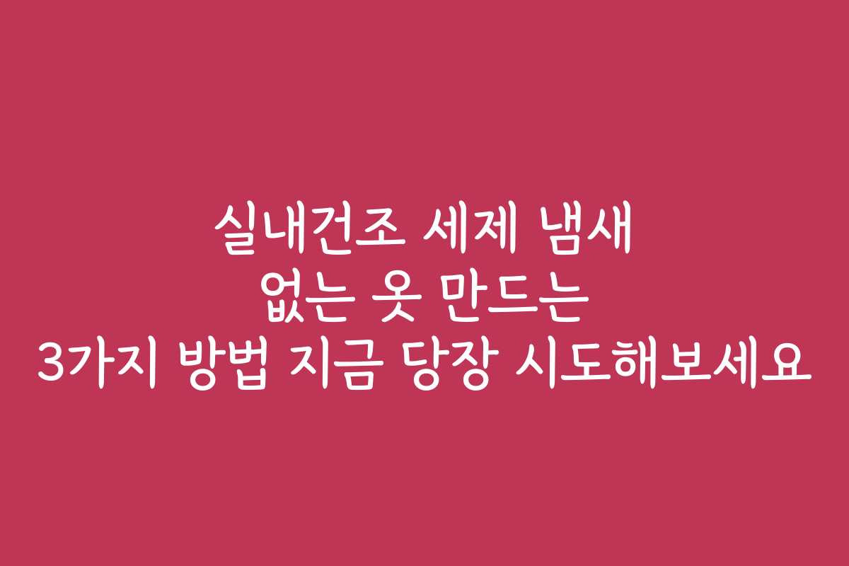 세탁을 한 후 건조 과정에서 발생하는 세제 냄새는 많은 사람들의 고민거리입니다. 날씨가 좋지 않거나 실내에서 세탁물을 말릴 때 냄새가 남는 경우가 많아 불편함을 겪습니다. 이번 포스팅에서는 실내 건조 시에도 냄새 없는 옷을 만드는 3가지 효과적인 방법을 소개합니다.