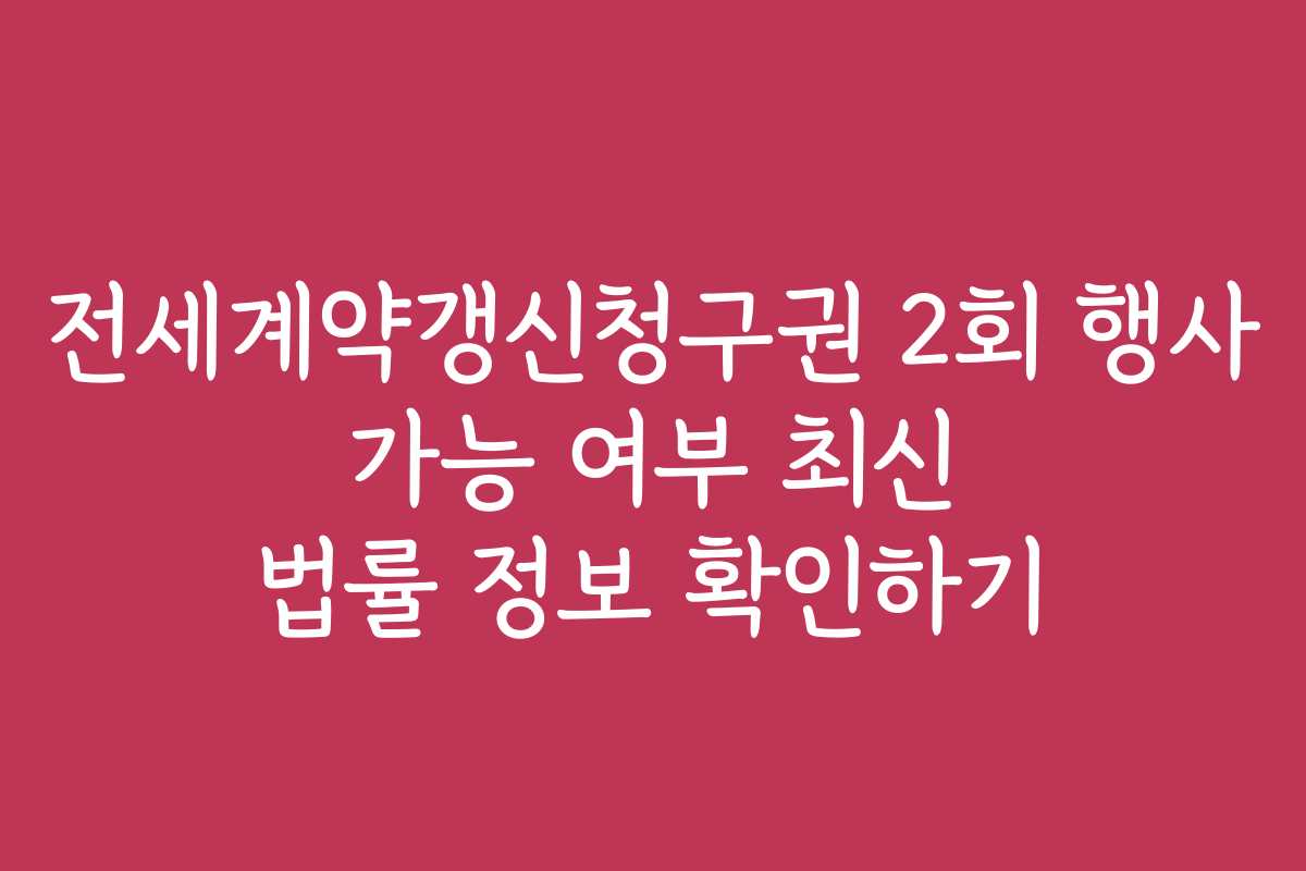전세계약갱신청구권에 대해 알고 계신가요? 최근 법률의 변화로 인해 이를 행사하는 방법과 기준이 달라질 수 있습니다. 특히 2회 행사 가능 여부에 대한 정보는 많은 임차인들에게 중요한 사항입니다. 최신 법률 정보를 통해 궁금증을 해소해 보세요.