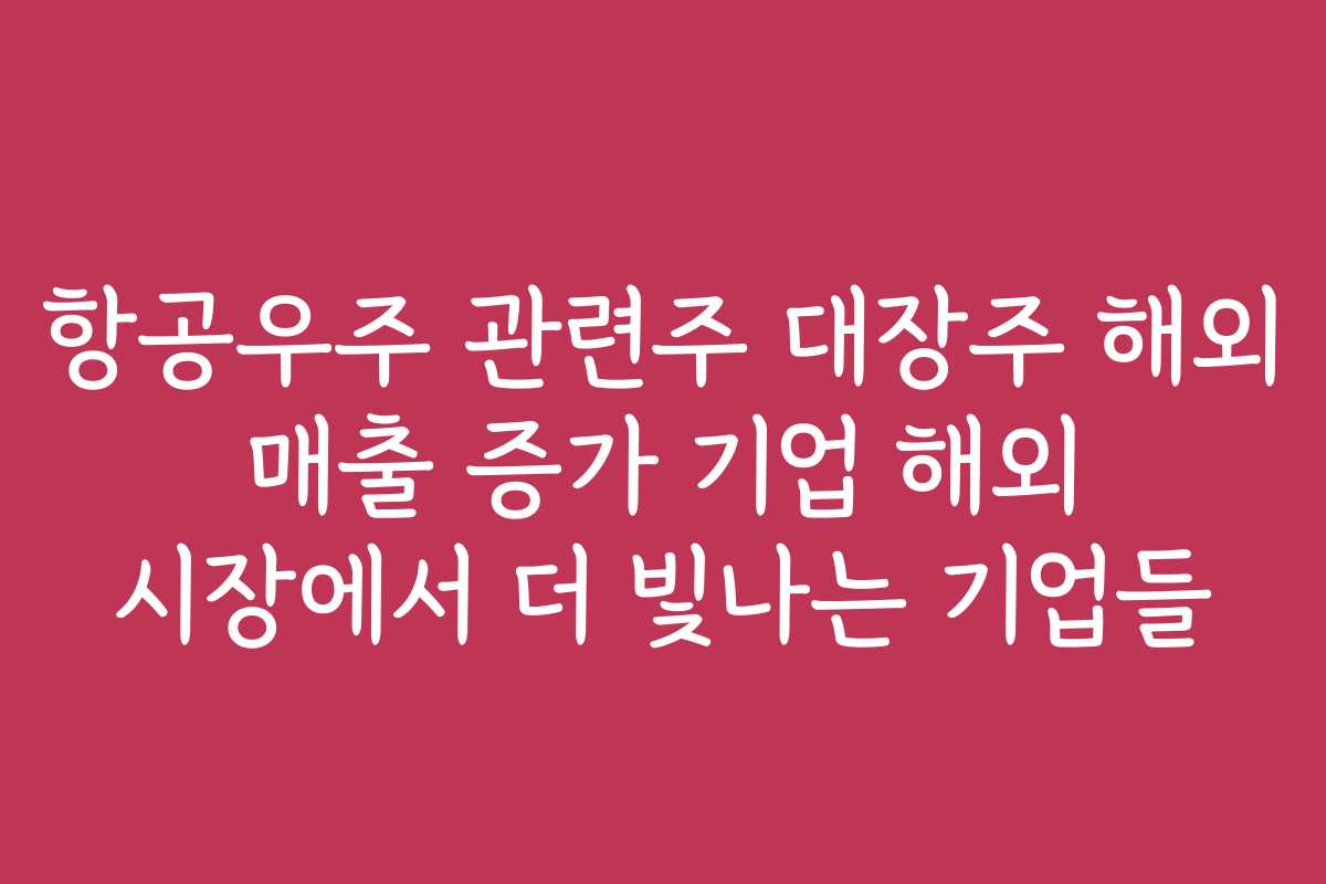 항공우주 관련주 대장주 해외 매출 증가 기업 해외 시장에서 더 빛나는 기업들