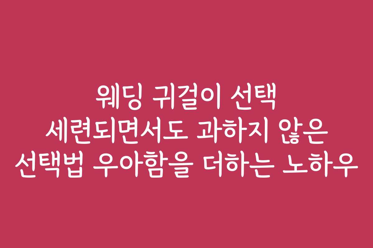 이렇듯 웨딩 귀걸이를 선택하는 과정은 신중함이 필요합니다. 세련되면서도 과하지 않은 선택을 통해 여러분의 결혼식을 더욱 특별하게 만들어보세요.