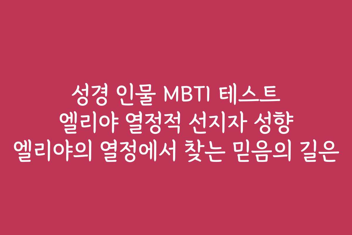 성경 인물 MBTI 테스트 엘리야 열정적 선지자 성향 엘리야의 열정에서 찾는 믿음의 길은
