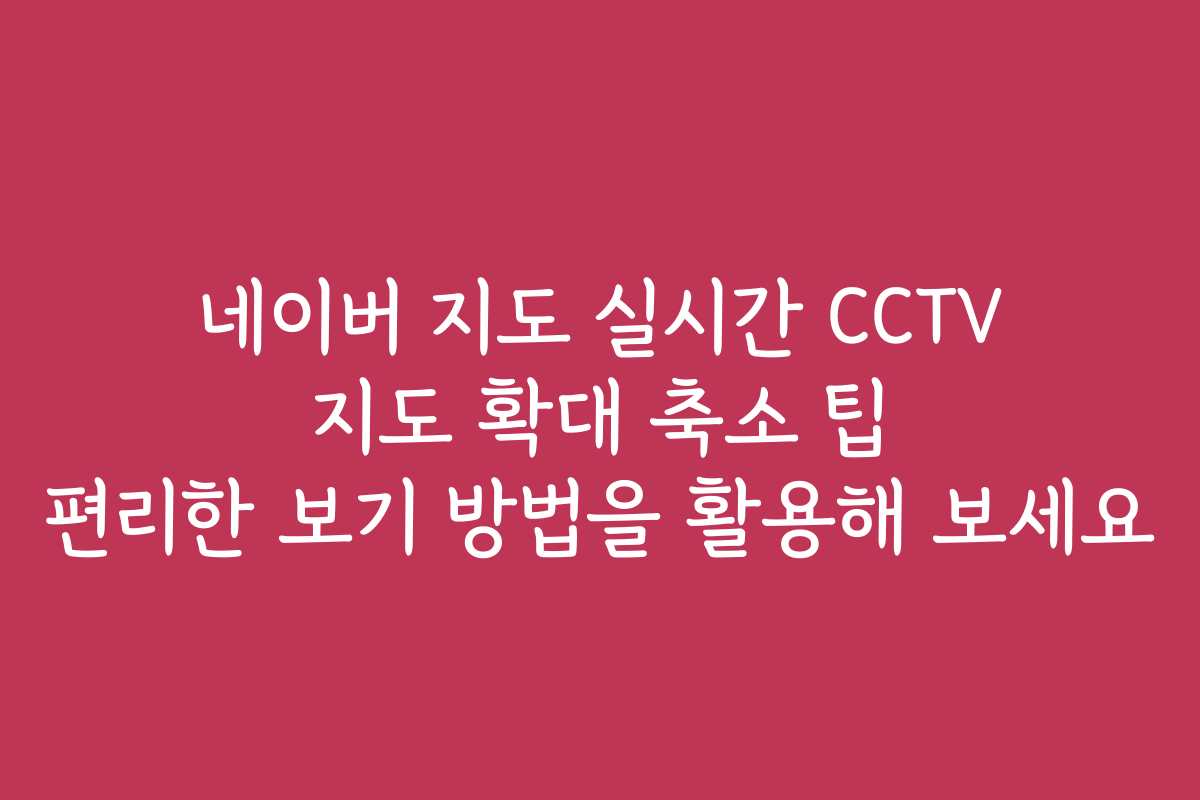 핵심 키워드: 네이버 지도, 실시간 CCTV, 확대 축소, 편리한 보기, 도로 상황, 혼잡도, 사용자 후기, 여행 팁, CCTV 영상, 실시간 정보, 안전한 이동