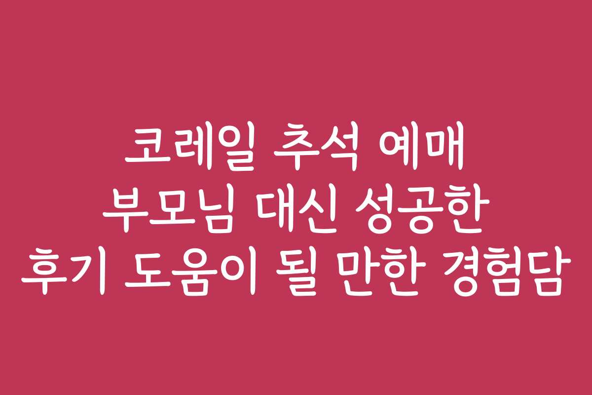 부모님 대신 코레일 추석 예매를 성공적으로 완료한 경험을 공유했습니다. 여러분도 이 방법을 통해 편리하게 예매하시고 가족과 함께하는 행복한 명절을 보내시길 바랍니다.