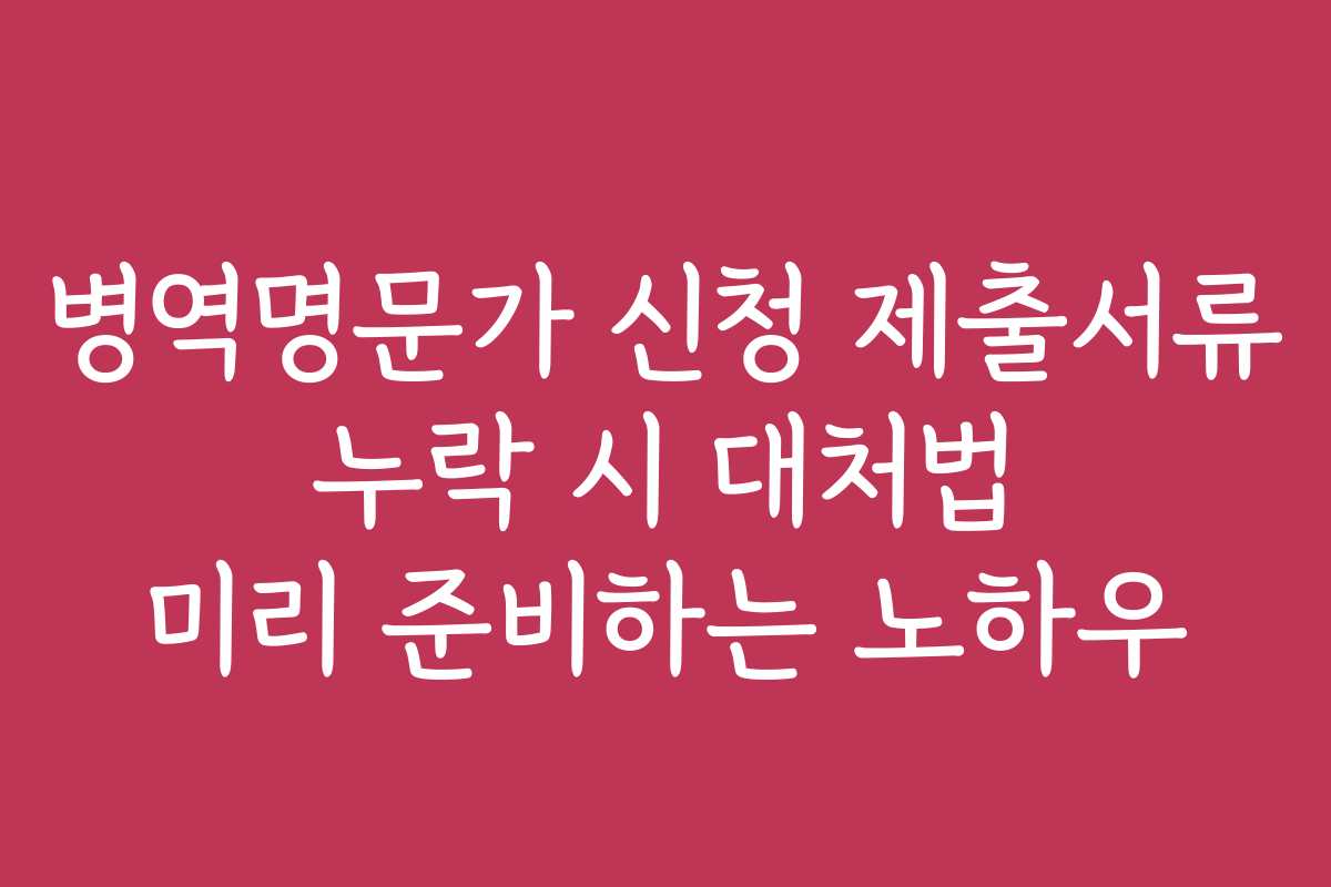 병역명문가 신청은 많은 분들에게 중요한 과정이지만, 제출서류 누락으로 인한 불이익을 경험하는 경우가 많습니다. 그러한 상황에 대비하여 미리 준비하는 노하우를 알아보겠습니다. 다양한 사례와 대처법을 통해 여러분이 걱정 없이 신청할 수 있도록 도와드리겠습니다.